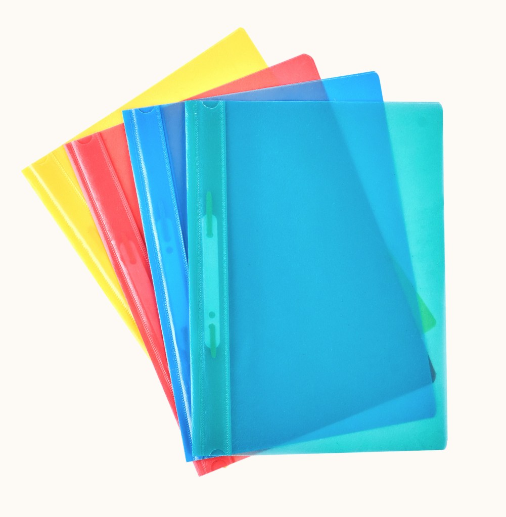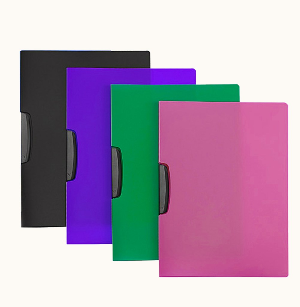 The durable plastic folder has two pockets inside that hold up to 100 sheets of standard-size paper. It’s great for organizing your office documents.
